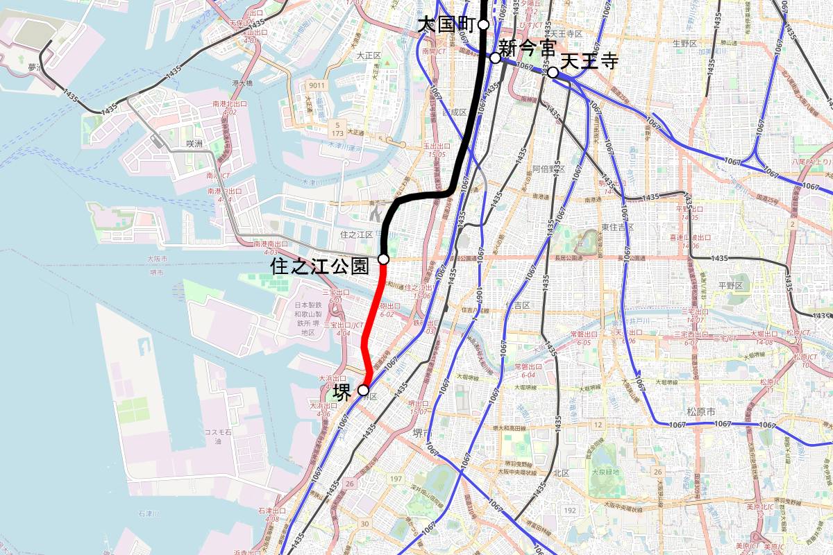 詳細なルートは固まっていない。住之江公園駅から大阪府道29号大阪臨海線に沿って南下し、南海本線の堺駅に乗り入れることが考えられる。