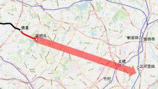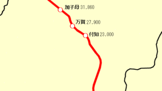 越美線は、福井県(越前)と岐阜県(美濃)を結ぶはずだった国鉄線。県境部の山岳区間が未開業のまま計画が中止された。ルート越美線(未成区間)の整備が推定された地域(薄赤)。【画像:OpenRailwayMap/OpenStreetMap、加工:...
